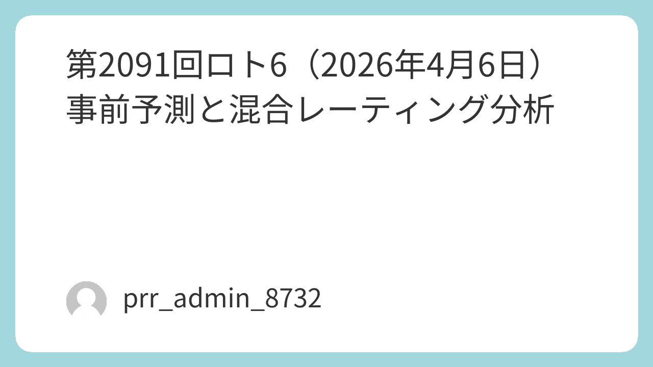 本記事では、2026年4月6日(月)抽せん予定の第2091回ロト6について、過去出目・セット球傾向・出現間隔・連動指数・階層レーティングを統合した混合レーティング分析を提供する。抽選前の段階で可能な「統計的優位性の抽出」を目的とし、読者が購入判断に活用できるよう、AdSense最適化を意識した構成で詳細に解説する。
