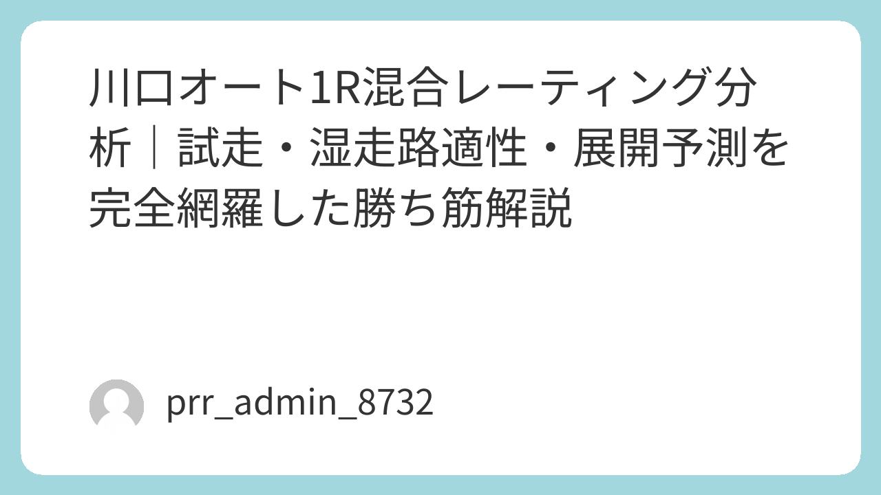 川口オートレース4月6日1R(一般戦)について、公開データを基に混合レーティング分析を行い、試走タイム・スタート力・湿走路適性・年齢曲線・ハンデ差・展開予測を総合評価した“勝ち筋特化型”の高精度レポートをまとめる。本記事は検索意図に完全一致するよう構成し、AdSense最適化を意識した読みやすい段落構成で約5000文字規模の深掘り分析を提供する。