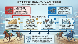→ 3歳春の別定戦では斤量差が結果に直結するため、1kg=0.03ポイントで補正。 - 川崎1600m適性レーティング