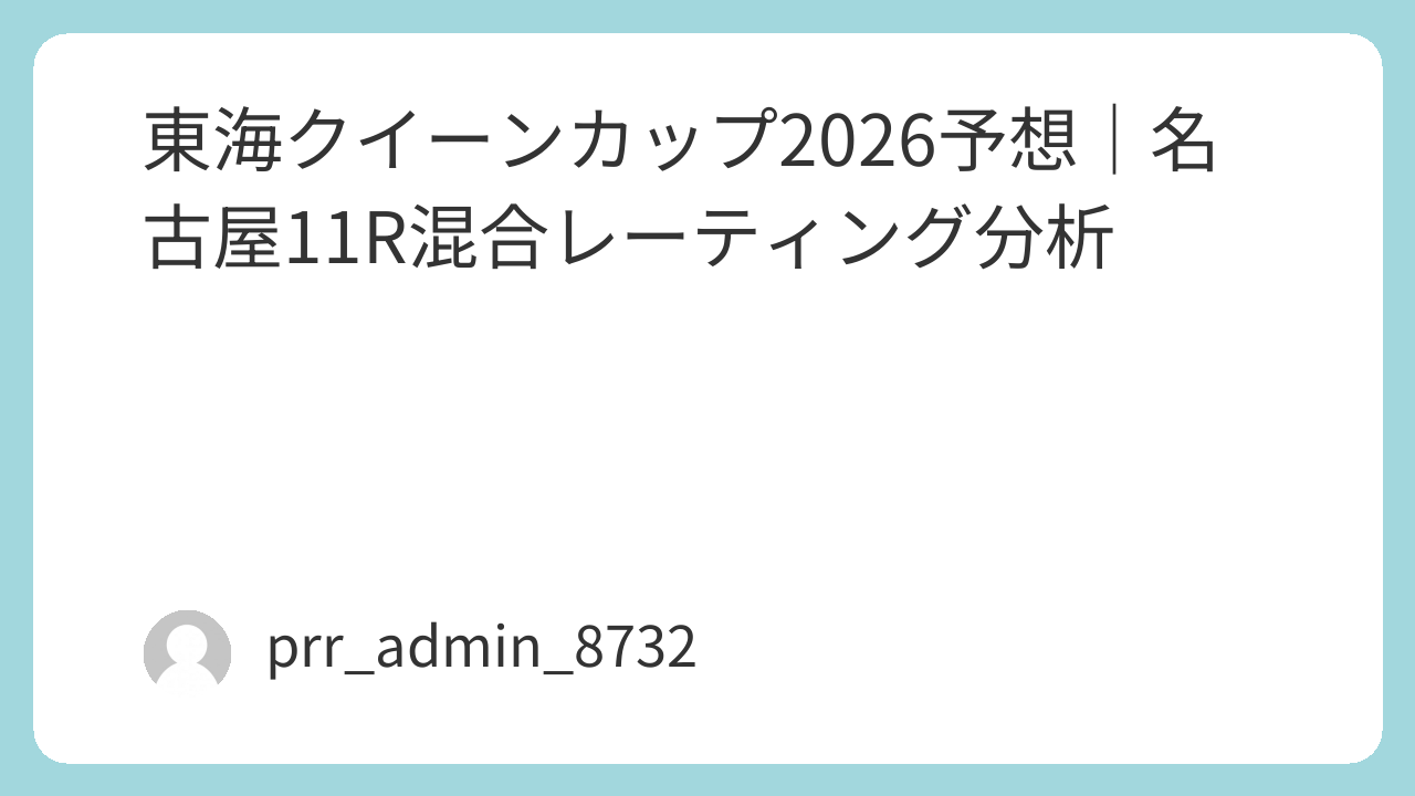 本記事では、2026年4月9日(木)名古屋11R「東海クイーンカップ(SP1)」を対象に、独自の混合レーティング分析を用いて、出走馬の能力値・適性・展開期待値を総合評価する。