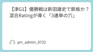 全国勝率7.17、当地勝率7.08、モーター35号機は2連率41.11%と優秀。 今節のST推移は 0.13 → 0.04 → 0.22 → 0.09 → 0.08 → 0.17 → 0.15 → 0.11 と、優勝戦に向けて明確に仕上がっている。 イン戦の信頼度は極めて高く、混合レーティングはMLR:92と突出。