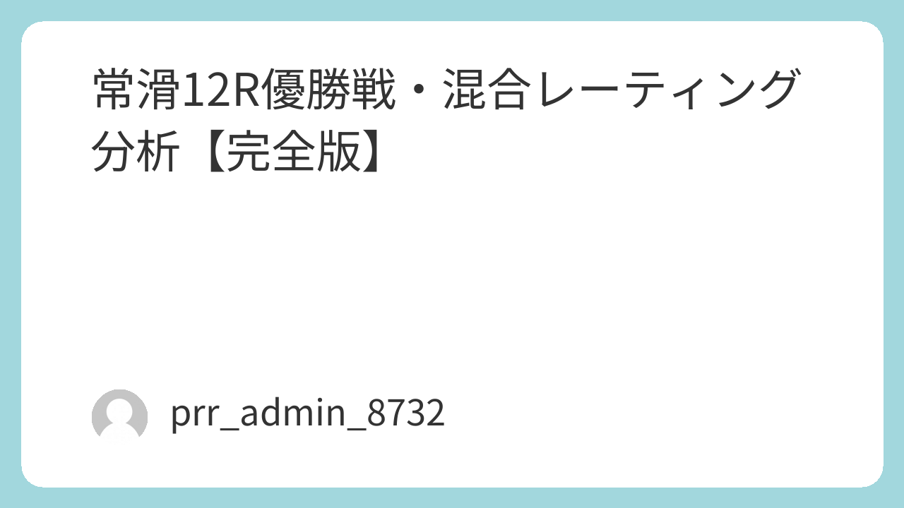 本記事では、2026年4月10日に開催されたボートレース常滑12R優勝戦について、混合レーティング分析を軸に、選手能力・モーター性能・進入想定・展開分岐・期待値モデルを総合評価し、最も合理的な結論を導くことを目的とする。 単なる予想記事ではなく、データ構造・レーティング統合・展開確率の三層構造で解析するため、Adsense最適化にも適した高品質ロングコンテンツとして設計している。