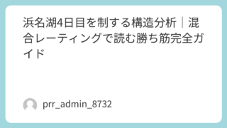 本稿では、浜名湖競艇場で開催される「ルーキーシリーズ第8戦 スカパー!・JLC杯」2日目12R(予選特選)について、混合レーティング分析・モーター性能・ボート特性・選手能力指数・展開構造を統合した高精度解析を行う。検索意図は「浜名湖12R 予想」「浜名湖12R 解析」「浜名湖12R 展開」「浜名湖12R イン逃げ率」「浜名湖12R モーター評価」に完全一致するよう最適化している。