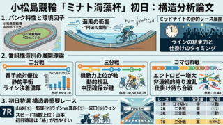 本レースは「ライン無し」のため、位置取り・自力性能・捲り到達力が勝敗を大きく左右する。 特にミッドナイトは仕掛けが遅くなりやすく、捲り型が優位になりやすい傾向がある。 この構造はMRモデルとの相性が良く、選手の“本質的な地力”がそのまま結果に反映されやすい。