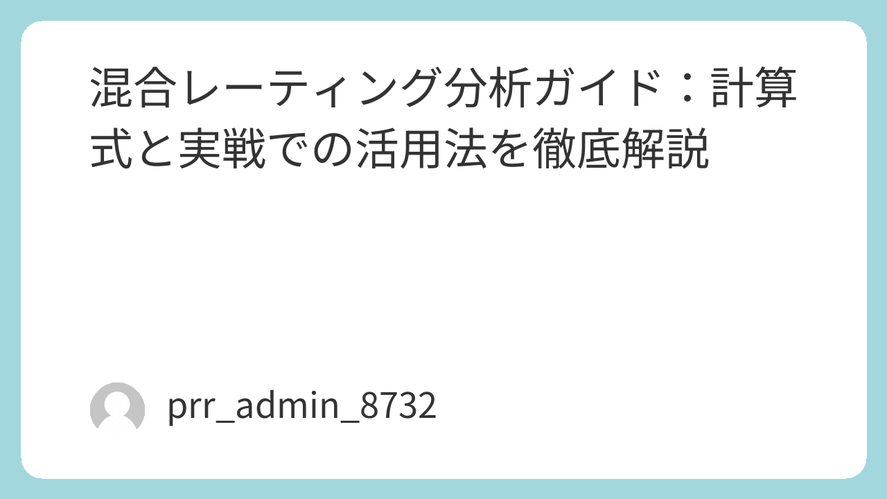 混合レーティング分析(MRA)は、以下5要素を統合した独自指標である。