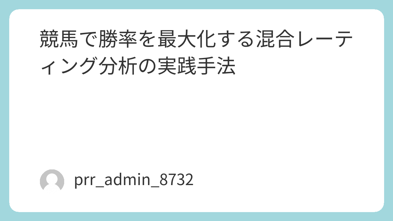 そこで本稿では、競輪特有の多因子を統合するために設計した混合レーティング(Mixed Rating:MR)を用い、勝率を最大化するための実践的な分析手法を体系化する。MRは、