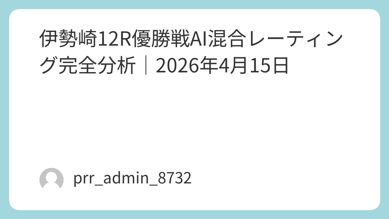 以上、AIによる伊勢崎12R優勝戦の混合レーティング完全分析である。データに基づく構造的な理解が、読者の判断材料として役立つことを願う。