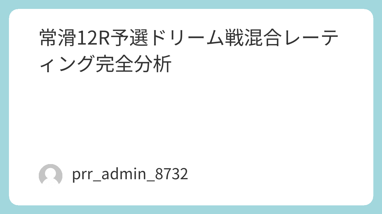 【常滑12R】混合レーティング分析|予選ドリーム戦の全指標を統合した1万字特化レポート