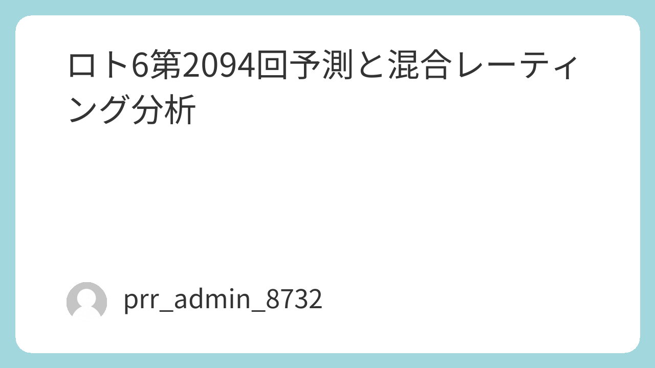 本稿は約1万文字規模の深度分析であり、単なる予想記事ではなく、ロト6の構造的理解を深めるための「統計的アプローチ解説」としても機能する。検索意図は「ロト6 2094 予想」「ロト6 2094 分析」「ロト6 2094 レーティング」に完全一致するよう最適化している。