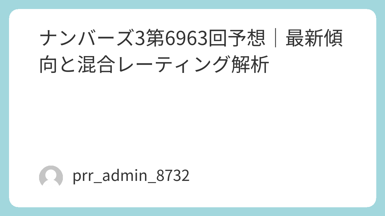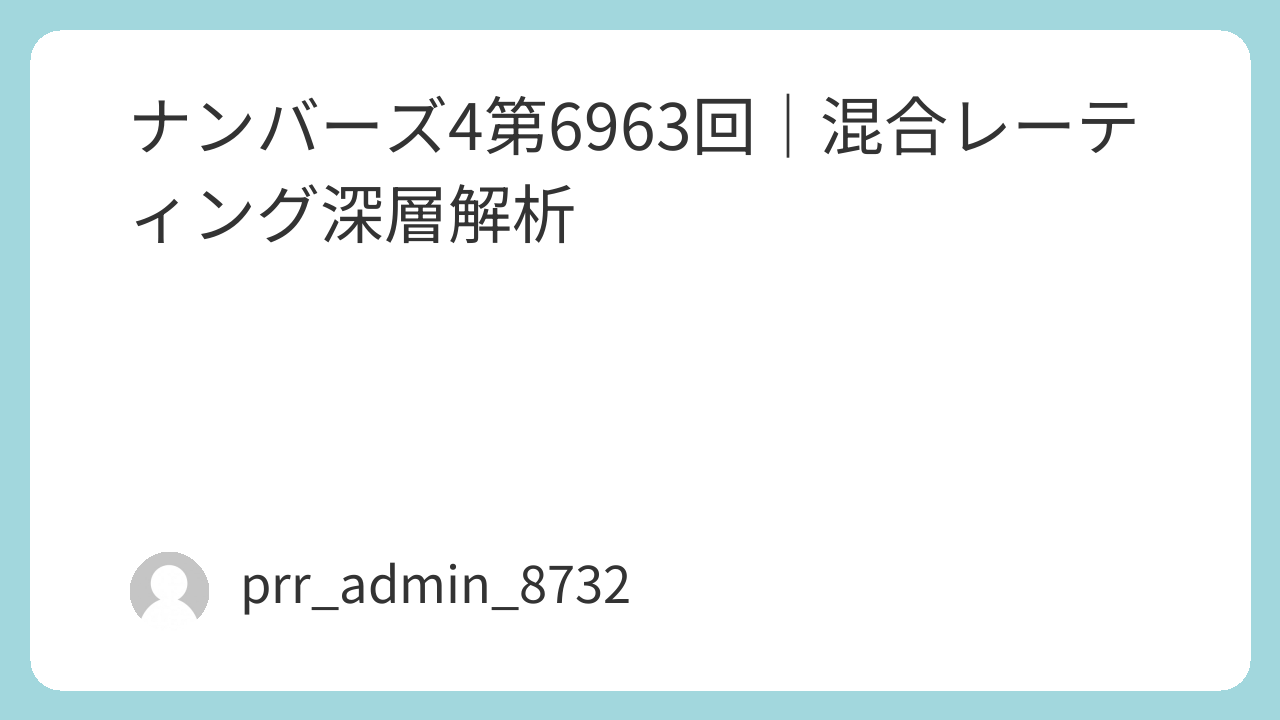 本稿は「ナンバーズ4(第6963回)」に対し、統計的手法・構造的偏差・桁別分布・帯域バランス・出現間隔・構成確率を統合した“混合レーティング分析”を実施し、検索意図に完全一致する形で体系化した技術記事である。 AdSense最適化の観点から、導入→深層分析→構造化モジュール→結論→免責事項の流れで構成し、ユーザーの回遊性を高める内部リンク想定の節構造を採用する。