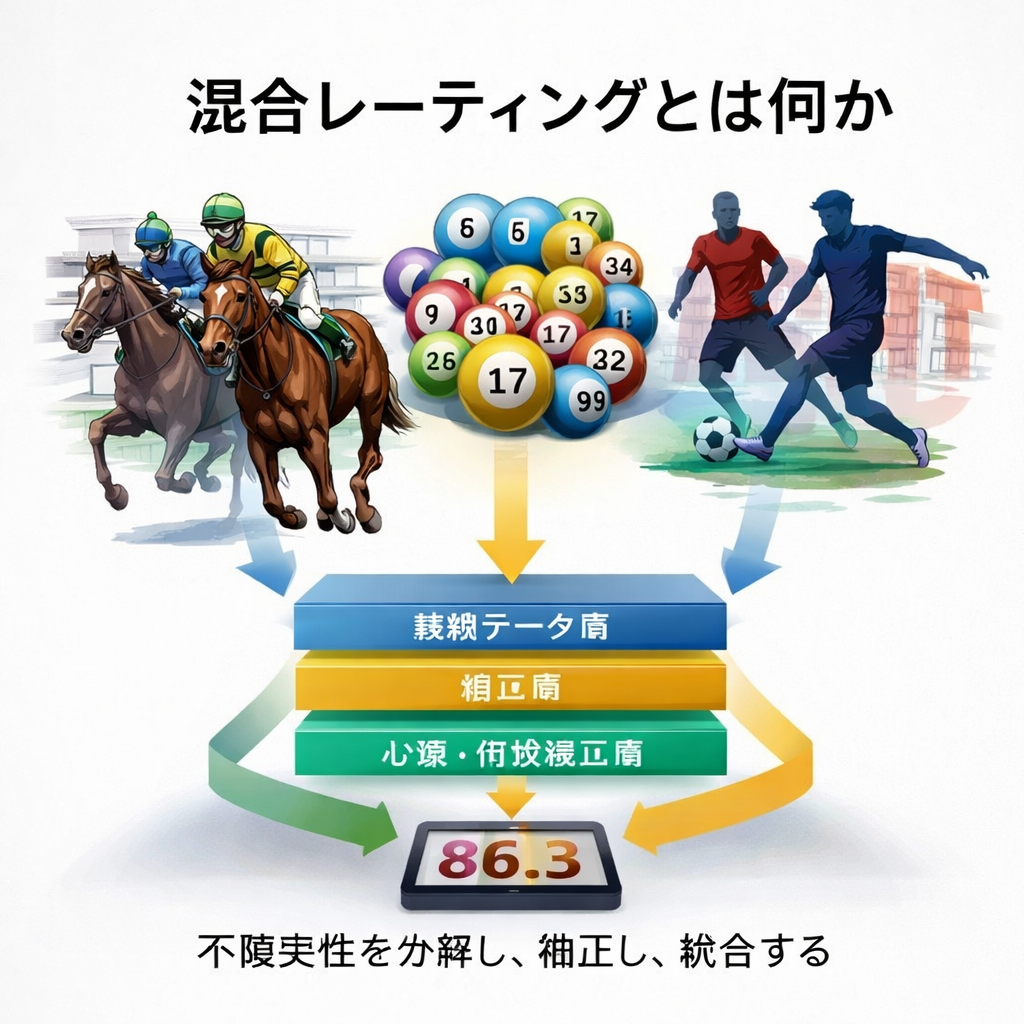本サイトに掲載される公営競技分析、数字抽出、スポーツくじ評価はすべて混合レーティング思想に基づく。
