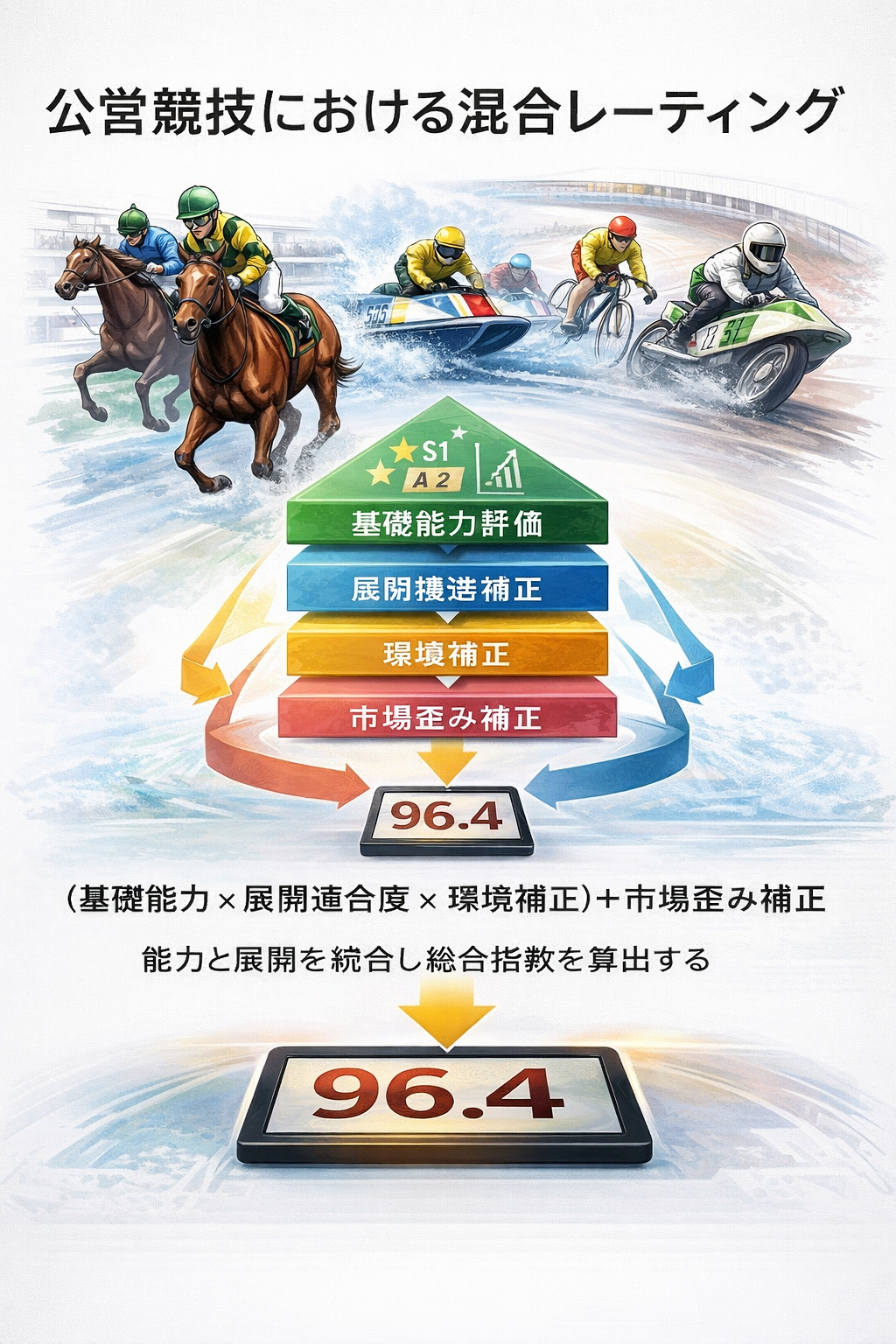 公営競技における混合レーティングは、能力と展開の交差点を評価する。