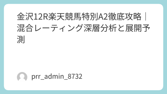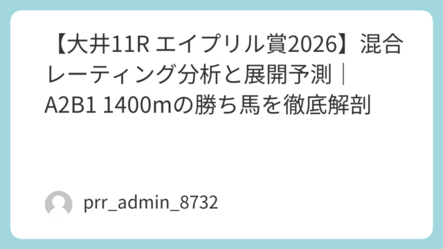 佐賀4R 佐賀城下スプリント(2026年4月19日)混合レーティング分析本稿では、2026年4月19日(日)に佐賀競馬場で行われる「佐賀4R 佐賀城下スプリント(3歳オープン・ダ1300m)」を対象に、データアナリスト視点による混合レーティ...